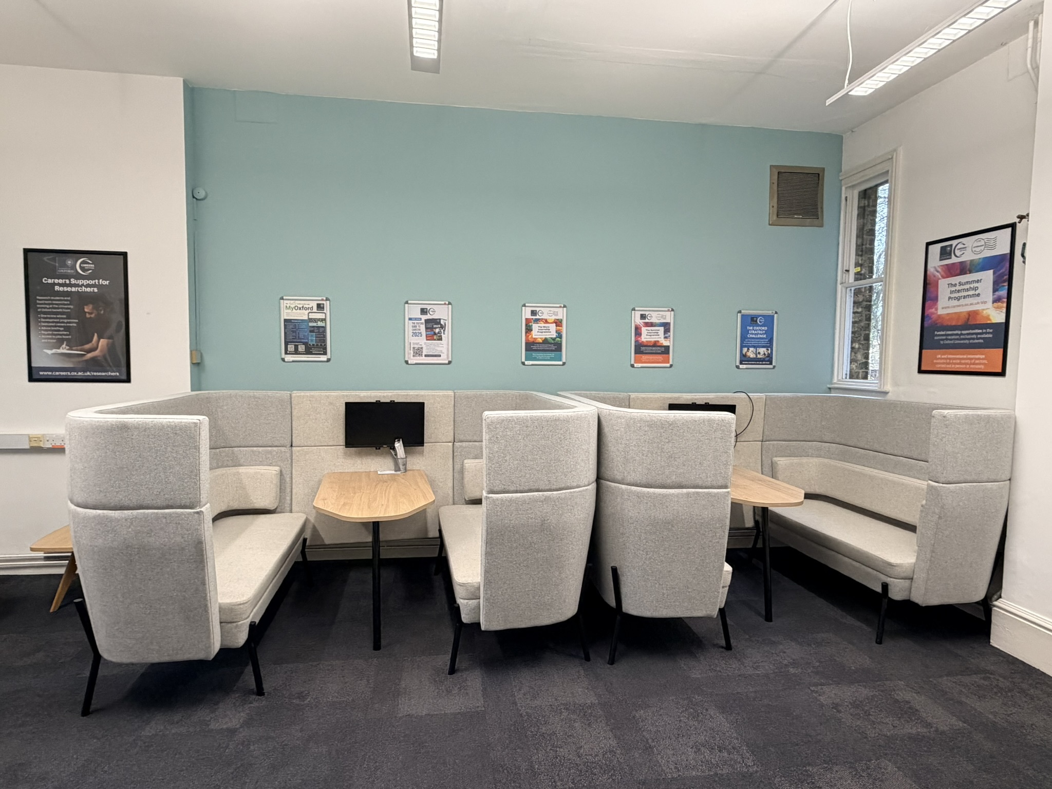 We can also provide bespoke event services to help coordinate your venue experience and use the space efficiently. Please email us bookings@careers.ox.ac.uk to discuss your needs.